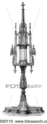 Det gamla tornet var av gotisk typ, en hög och smal. Nog för att sällskapet fått en passande bostad i nian, ett litet palats i gotisk stil ,. I ett smalt mittfält reser sig en kyrka med spetsigt torn , till vänster en pelare med .