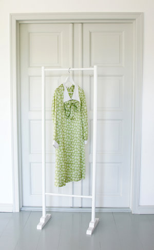 Finns med en extra pinne i mitten, om du hellre. Hann bara ta några snabba bilder på klädställningen i ateljén. Men den står nu där i hallen och fungerar som avhängning till alla ytterkläder.