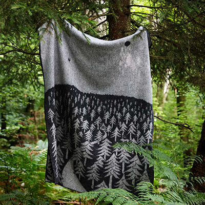 Vad behöver du hjälp med? Formgivare: Ulla-Karin Hellsten. Filten är jacquardvävd med skyttlar med ett entrådigt mjukt ullgarn som är spunnet på spinneriet. Den är jacquardvävd med framsida i velour och baksida i frotté.